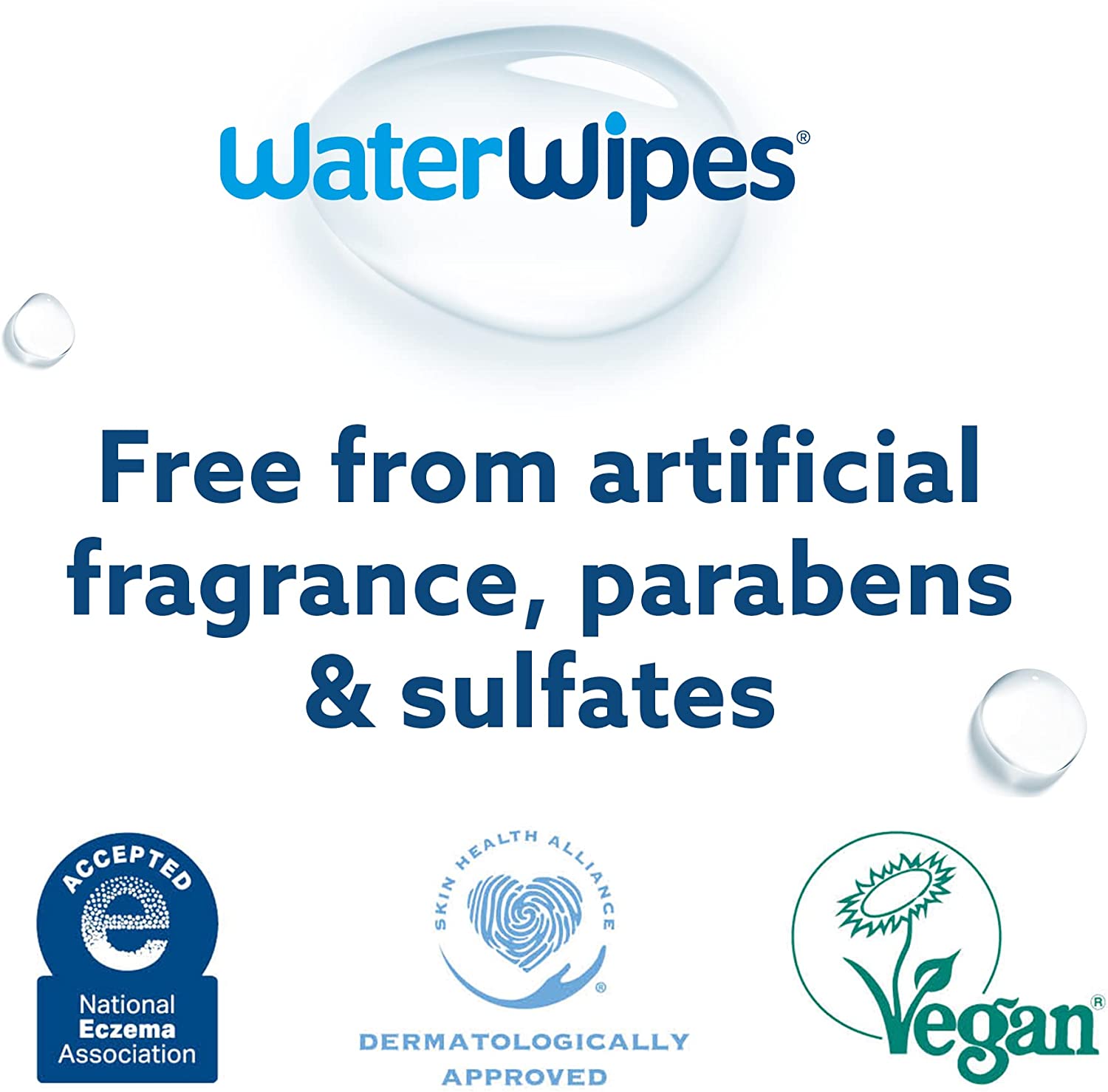 WaterWipes Plastic-Free Original Baby Wipes, 99.9% Water-Based, Unscented, Hypo-Allergenic, For Sensitive Skin, 540 Pieces (9 Packs), Packaging May Vary